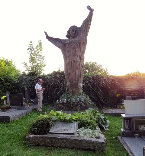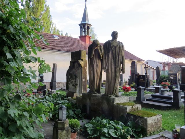 Hrobka profesora Nekuta (1840–1909), redaktora časopisu Vesmír, přírodovědce, který prozkoumal a popsal chýnovskou jeskyni, se právě opravuje – půlkruhová cihlová stavba představuje otevřenou náruč, která má přijmout mrtvého.