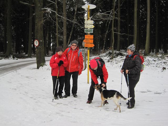 V 7:30 jsme z Jihlavy odjeli autobusem do Žďáru nad Sázavou, odtud pokračovali v 9:00 do Polničky a tam se po červeně značené cestě vydali směrem k Velkému Dářku – šlapalo nás pět a na špici si neúnavně hlídala svou pozici (aniž by zanedbávala průběžnou kontrolu okolí) sportovně založená fenka Adina.