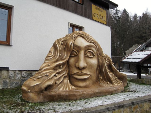 Hned na kraji vesničky ukryté ve strži pod rozlehlým vrchem vítá před penzionem všechny příchozí krásná a tajemná Olšiakova Josefína, dva metry vysoká, do vlasů zahalená.
