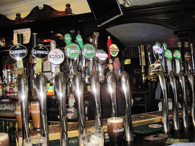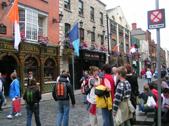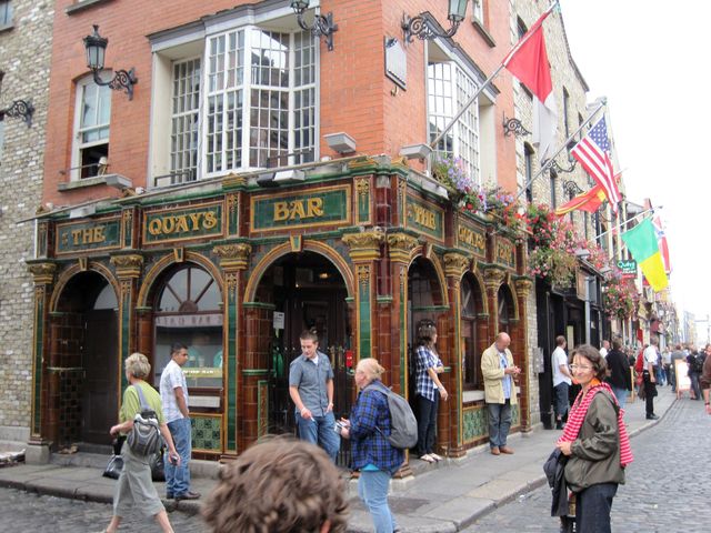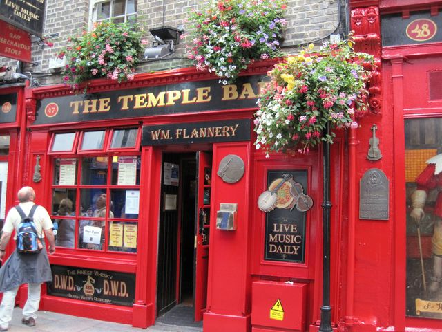 Nejslavnější bar v Dublinu dal jméno celé čtvrti v centru – Temple Bar – blízko je univerzitní areál Trinity College, je to část tak proslulá jako v Praze třeba Malá Strana…
