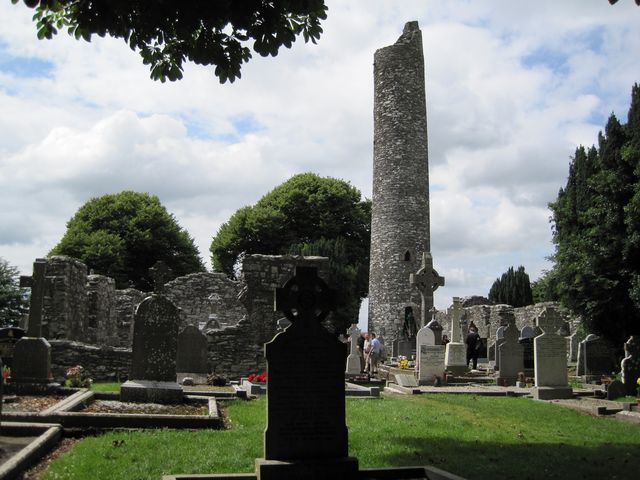 Nedokážu smlčet, co jsem se dočetla: sv. Buithe, významný člověk, který řídil klášter, centrum vzdělanosti celého Středního Irska, zemřel v roce 521 – v tu chvíli přispěchali andělé, snesli z oblohy žebřík, aby mohl zesnulý po něm vystoupit přímo do ráje… (Andělé stoupající po žebříku též hráli podstatnou roli při výstavbě katedrály v anglickém městě Bath, kde začínalo naše putování 🙂 )