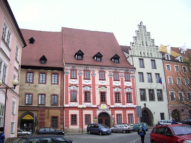 kašna se sochou Rolanda na náměstí Krále Jiřího z Poděbrad – vlevo na historickém domě je socha panovníka, který v něm v letech 1459–1461 pobýval, když urovnával spory mezi Čechy a říšskými knížatyčást náměstí se Špalíčkem, vedlejší dům, před kterým stojí strom, je Pachelbelův, v němž byl v únoru 1634 zavražděn Albrecht z Valdštejnakašna se sochou Herkula nedaleko Špalíčku, což je komplex jedenácti kupeckých domů a masných krámů, které vznikaly od 13. do 15. stoletíŠpalíček v Chebu – půdorys dvou bloků oddělených Kramářskou uličkou 160 cm širokou, byl dodnes zachovánchebské kašny pocházejí z 15. století; na náměstí prý je 51 významných historických budovNová radnice v Chebu byla postavena na začátku 18. století podle návrhu Giovanniho Batisty Alliprandiho, od roku 1962 tu sídlí Galerie výtvarného uměnína obrázku z roku 2006 jsou obě chebské kašny připravené na nadcházející zimuvedle Gablerova domu s rokokovou fasádou z poloviny 18. století je nejstarší chebský dům z počátku 15. století – gotický Schirdingerovský dům s hrotitým portálem a stupňovitým štítem – za úzkým průčelím (8 m) je 52 metrů hluboká parcela – ještě pamatuje doby počátkem 13. století při zakládání náměstí v Chebu (foto z roku 2006)