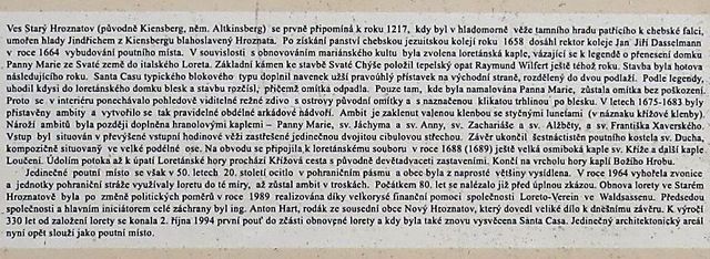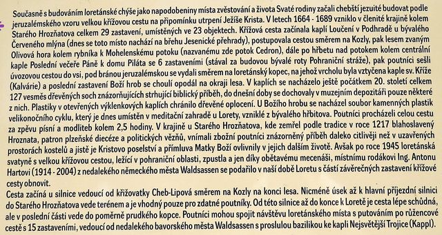 Loreta ve Starém Hrozňatově – vybudovali ji chebští jezuité ve 2. polovině 17. stoletíhistorie poutního místa ve Starém Hrozňatověkolem Lorety byla vybudovaná meditační zahradarestaurované barokní sochy v zahradě Lorety – poutní areál se opravuje od začátku 90. let minulého stoletíinformace o Velké křížové cestě ve Starém Hrozňatověu Božího hrobu je soubor kamenných plastik „velikonočního cyklu“sochy v meditační zahradě pocházejí z bývalé křížové cestyčást závěrečných zastavení křížové cesty je obnovena – vznikla ve 2. polovině 17. století v krajině kolem Starého Hrozňatova a měla 29 zastaveníLoretaChýše Panny Marie, kopie Svatého nazaretského domku z Loreta – obnova ve Starém Hrozňatově byla dokončena roku 1994do zdejšího loretánského domku kdysi uhodil blesk, poškodil stavbu, omítka odpadla, ale zůstala na místech, kde byl namalovaný obraz Panny Marie, proto jsou omítky ve Svaté Chýši ponechány původní