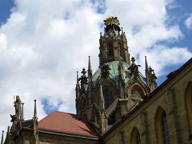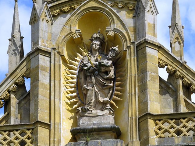 od roku 2008 mají věže nové, 26 metrů vysoké jehlanovité helmice, které jsou kopií novogotických z roku 1869v zádveří chrámu objevil Mirek toto hezké seskupení