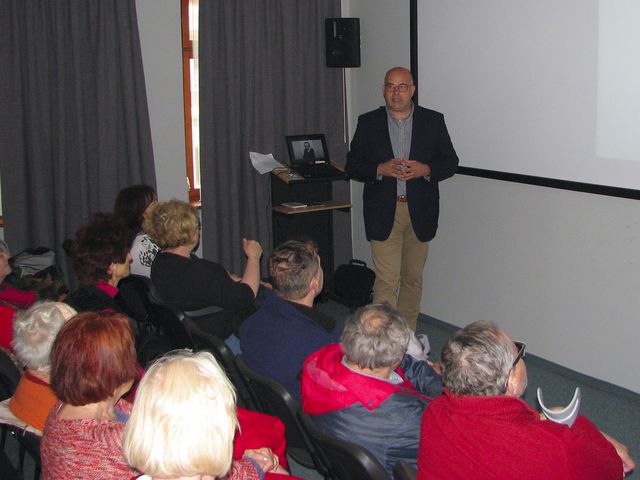 Pan Geist doprovodil své strhující, velmi barvité vyprávění o životních osudech sester Gustava Mahlera a jeho manželky Almy fotografiemi a připomenutím kulturní, společenské a politické situace první poloviny 20. století – v jeho přednášce před posluchači defilovaly pohnuté osudy židovské části rodiny během 2. světové války i postoje příslušníků rozvětveného rodu, z nichž někteří se po zabrání Rakouska Němci přidali na stranu tehdy vládnoucí.