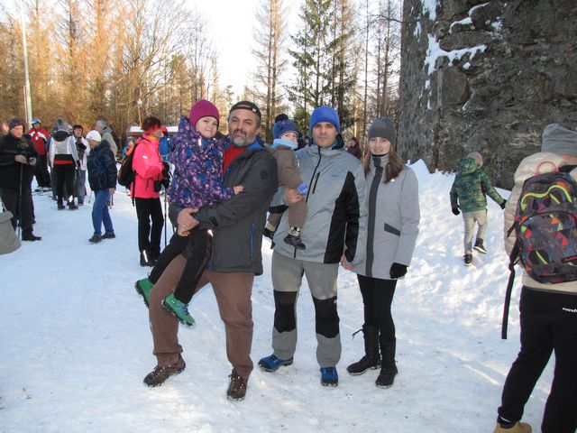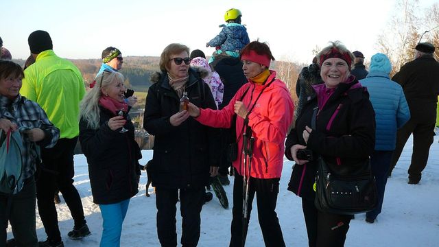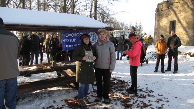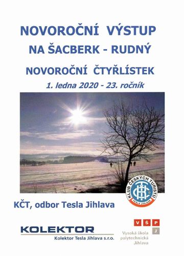 setkání s manželi Zápotočnými, kteří jsou nejstaršími výkonnými členy KČT Čeřínek Jihlava; foto F. Janečekcesta na vrchol Šacberku – kříž s klekátkem, u něhož se na svahu kopce od pradávna zastavují pocestní, byl nedávno zrekonstruován; foto J. Daňhelvysílač na Šacberku, 68 metrů vysoký, patří Českým radiokomunikacím a je odtud šířen také internet, signál pokrývá území, kde žije asi 85 tisíc obyvatel; foto J. Daňhelmezi 2. a 3. hodinou se na vrcholu kopce 615 metrů vysokého scházeli turisté; foto J. Daňhelu torza rozhledny (vyhořela v roce 1940) turisty očekávali pořadatelé – první dvojici tvořily Iva Svobodová a Miluška Číhalová z KČT Tesla Jihlava; foto F. JanečekMíla Bradová a Lída Březinová vystřídaly první partu a věnovaly se příchozím – za finanční příspěvek pro stavbu stezek vhodných pro vozíčkáře odměňovaly dárce odznáčkem „Novoroční čtyřlístek“ a kalendářem – krásný diplom samozřejmě nechyběl; foto F. Janečekvýšlapu na Šacberk se zúčastňují celé rodiny – zde jsou Čermákovi z Batelova; foto F. Janečekpřípitek na vrcholu Šacberku; foto J. Daňhelsjezdovka na severním svahu Šacberku nad obcí Zborná je 380 metrů dlouhá; lyžovalo se na umělém sněhu; foto J. DaňhelIva Svobodová, jedna z pořadatelek KČT Tesla Jihlava, je spokojená s účastí – pečlivá příprava akce je zúročena; foto J. Daňhelčlenové všech jihlavských odborů KČT – v popředí Honza Korbel z KČT Čeřínek s Janou Šánovou z KČT Bedřichov, vlevo vzadu manželé Holcovi z KČT Tesla (ti přijeli z Dolní Cerekve) ; foto J. Daňhelhodně zdraví v novém roce!líbezná Vysočina na pamětním listě první akce roku 2020