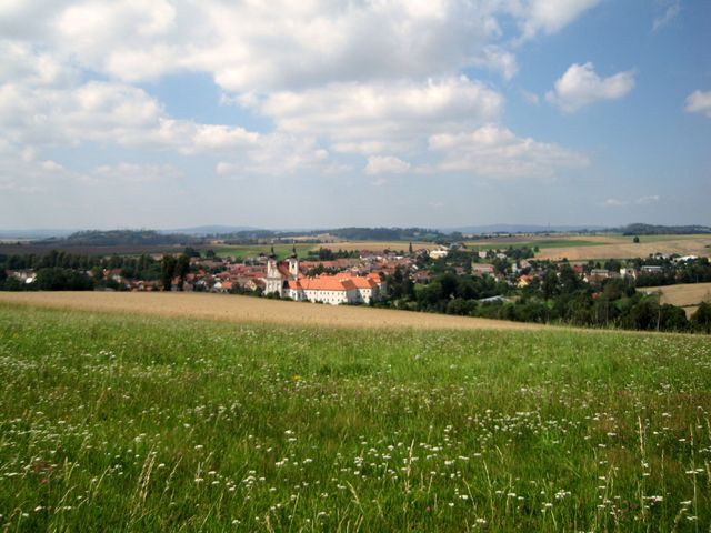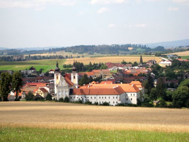 Druhý pokus ve čtvrtek 13. srpna proběhl bezchybně, před desátou hodinou jsme byly v Nové Říši na náměstí a měly do začátku prohlídky premonstrátského kláštera půlhodinku na zastavení u zdejších významných budov.