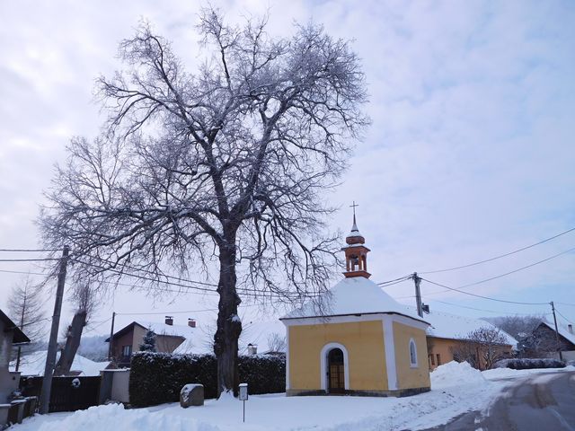Vyšly jsme po silničce svažující se směrem k Bílému Kameni a užívaly si výhledů. V obci, krásně upravené, jsme se zastavili na návsi u kaple.