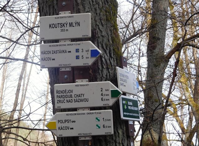 Kaple Nejsvětějšího Srdce Ježíšova v Račíněvsi u Kácova.Rozcestník u Koutského mlýna – dál budeme pokračovat po zeleně značené trase do Zruče nad Sázavou.Kaplička Panny Marie u Koutského mlýna, ležícího blízko vesnice Polipsy v údolí potoka Čestínek.V době II. světové války se v rodině zdejšího mlynáře ukrýval jejich spoluobčan J. Stránský před deportací do koncentračního tábora. Zůstal zde až do konce války. Rodina hodně riskovala, protože za pomoc židovským obyvatelům byla smrt.