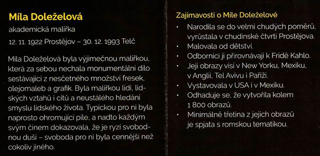 Obrazy jsme Miluška ani já nefotily, zájemci je najdou na webu. Styl malby Míly Doleželové byl originální, stejně jako její životní příběh.