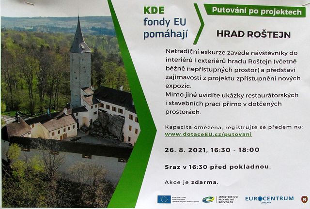 Na letáku, který jsme měli k dispozici, bylo uvedeno, že celkový finanční náklad na roštejnský projekt byl 68,5 milionů Kč, z toho dotace EU činila více než 58 milionů Kč.
