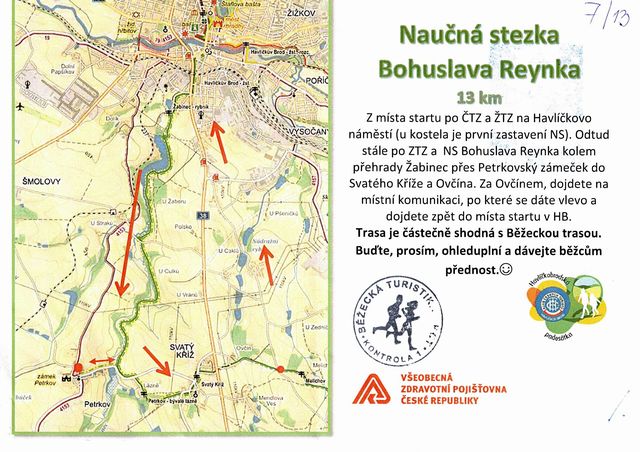 Na akci jsem se vydala s Miluškou a Františkem, start byl v zasedací místnosti MÚ v Rámech. Pořadatelé z odboru KČT Havlíčkův Brod připravili 4 pěší trasy (47, 36, 25 a 13 km), 2 cyklotrasy, Toulavý kočárek (6 km) a 7,5 km dlouhou běžeckou trasu. My jsme si vybrali jubilující NS Bohuslava Reynka, obdrželi popis trasy a mapku, popovídali s pořadateli a známými a ve dni, který sliboval krásné počasí, vykročili do přírody. Vzpomínali jsme na dobu před 10ti lety, kdy se stezka slavnostně za účasti obou synů Bohuslava Reynka otevírala.