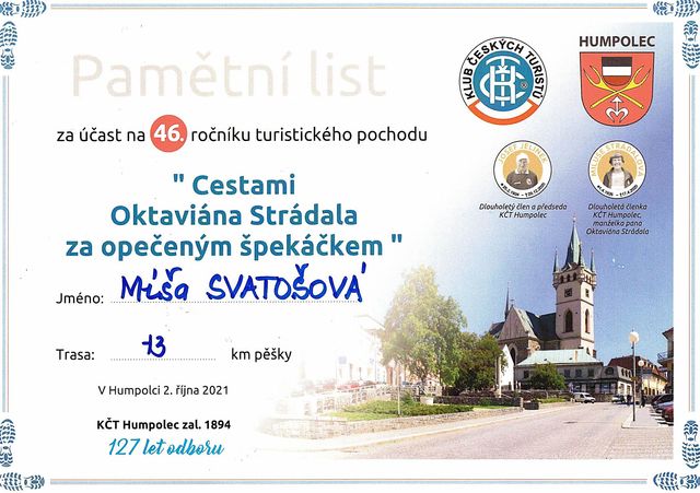 Cestami Oktaviána Strádala 2011 – osobnost humpolecké turistiky,