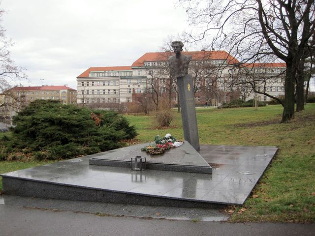 Podle návodu jsme se nejdříve zastavili na náměstí Hrdinů u památníku Milady Horákové.