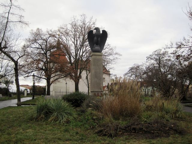 Odtud jsme se vydali ulicí Na Pankráci k parčíku na místě bývalého hřbitova k Pomníku obětem 1. světové války, který byl postaven nedaleko kostela sv. Pankráce.