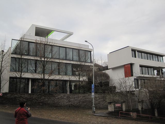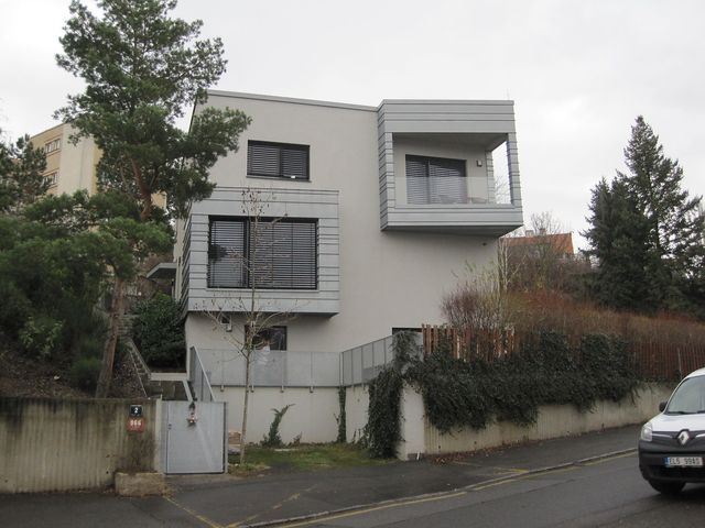 Na křižovatce ulice Lopatecké s ulicí Na Lysině stojí dvě vily představující současnou architekturu: