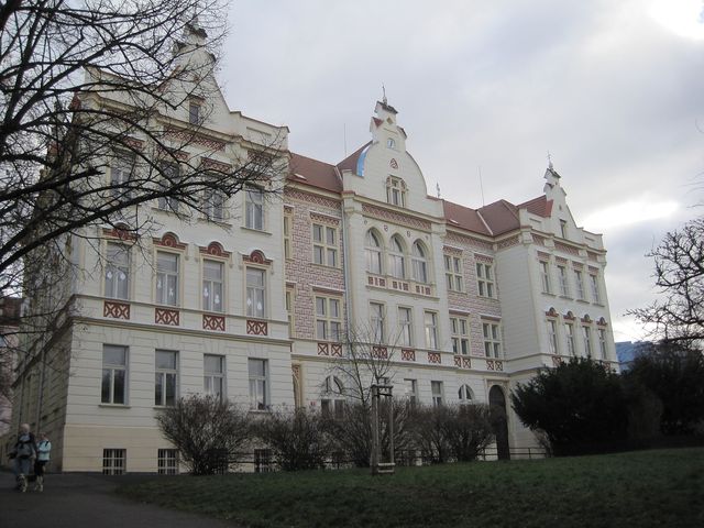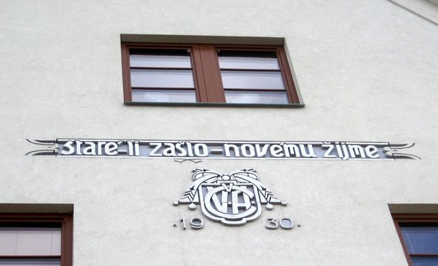 Základní kámen budovy pocházel z rodného domu Miroslava Tyrše (1832–1884) v Děčíně.