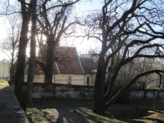 Pokračovali jsme dál kolem Podolského hřbitova k areálu vysokoškolských kolejí pro České vysoké učení technické.