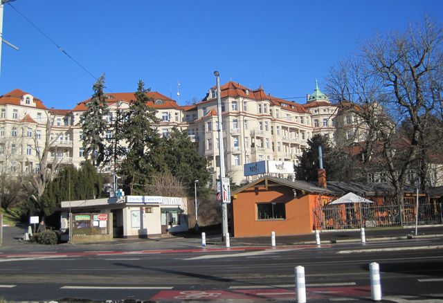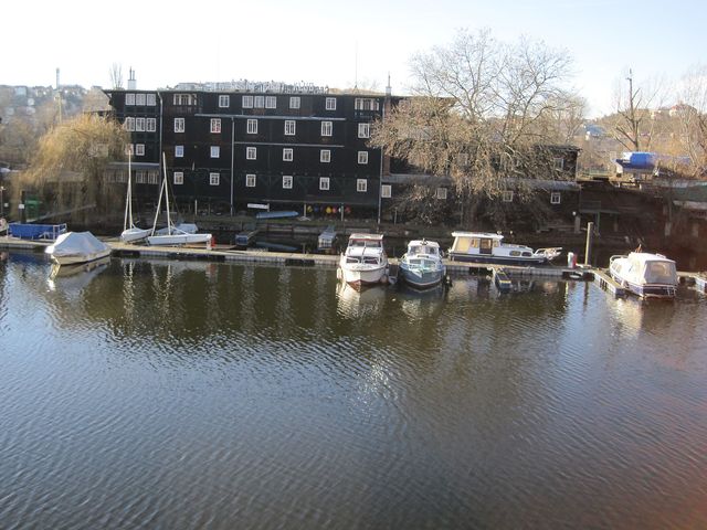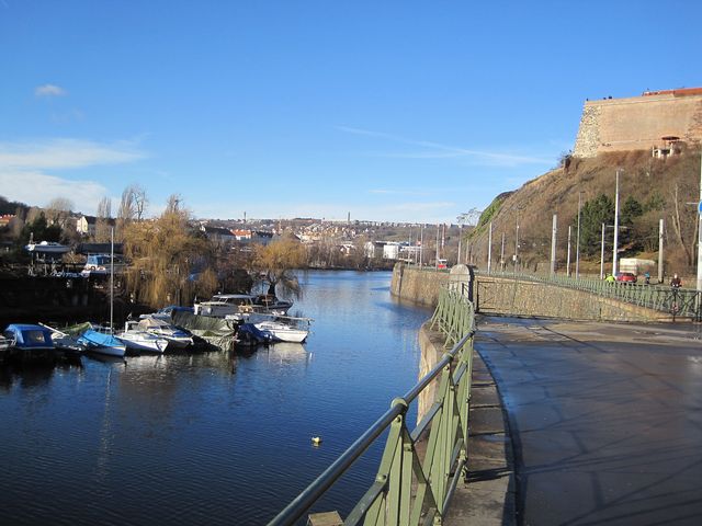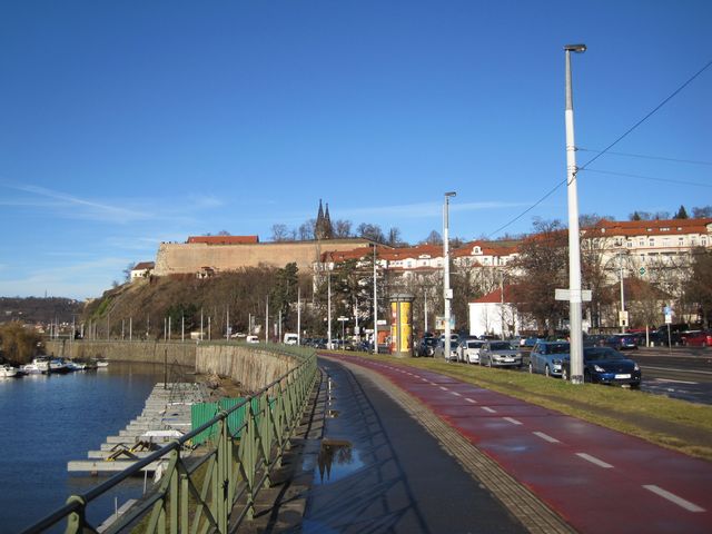 Přešli jsme na Podolské nábřeží a obdivovali komplex budov Ústavu pro péči o matku a dítě, vyšehradské hradby, přístaviště lodí na Vltavě a nádhernou modrou, téměř jarně slunečnou oblohu a skvělou viditelnost.