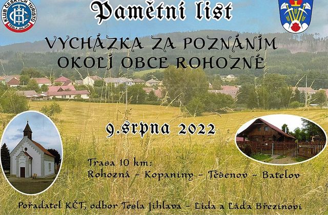 Vycházku připravili Lída a Láďa Březinovi z KČT Tesla Jihlava s úmyslem ukázat účastníkům okolí obce Rohozné, k níž mají láskyplný vztah.