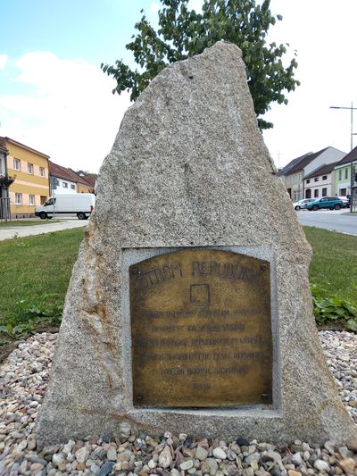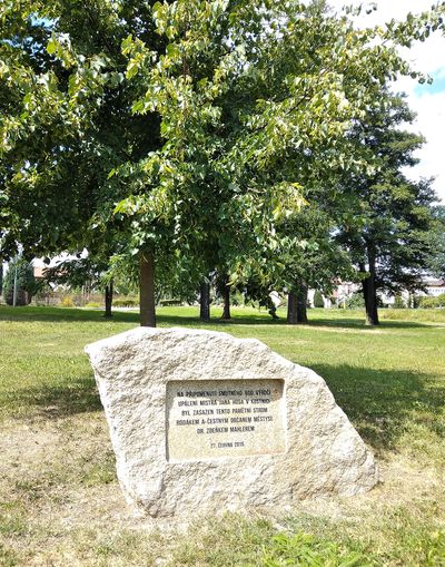Na vlakové nádraží jsme se vydali opečovaným parkem u Zámeckého rybníka a zastavili se u stromu s pamětním kamenem.