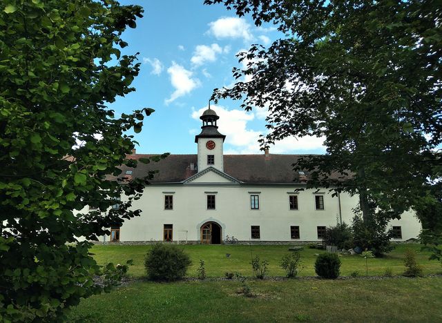 Kdysi zde bývala zemanská vodní tvrz, která byla v 17. století přestavěna na renesanční, tzv. Starý zámek – ten až do roku 1945 sloužil jako administrativní a hospodářská budova s bytem správce.