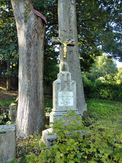 Nedaleko osady nás zaujal kříž pod mohutnými stromy: