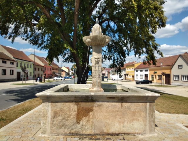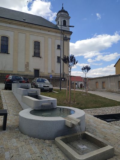 Vpravo vedle kostela vznikl zcela nový parčík s kaskádovou kašnou – pro nás novinka!