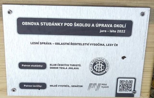 Na jaře 2022 se sešli členové výboru KČT z odboru Tesla Jihlava se senátorem pro obvod Jihlava RNDr. Milošem Vystrčilem, současným předsedou Senátu PČR, a domluvili se na obnově a úpravě studánky Pod školou, která velmi utrpěla vykácením okolního kůrovcového lesa. Okolí začalo zarůstat křovisky a cesta, která kolem studánky vedla, se stávala neprůchodnou. S vlastníkem, Lesy ČR, bylo vše domluveno a přislíbena spolupráce.