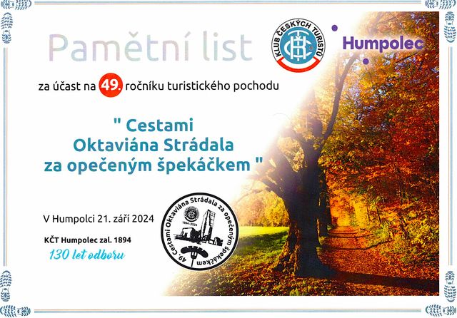 V letošním roce oslavovali humpolečtí turisté 130. výročí založení svého odboru, proto jsme se obzvláště rádi zúčastnili jejich pochodu a při té příležitosti jim poděkovali za práci a popřáli sílu a výdrž do budoucna.