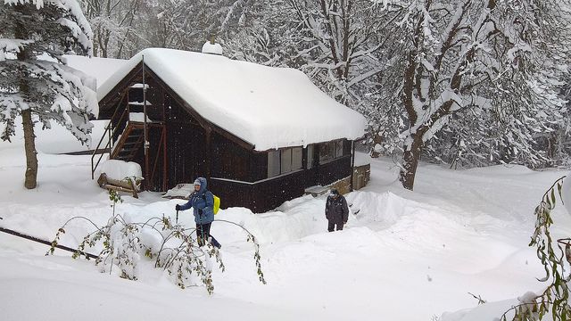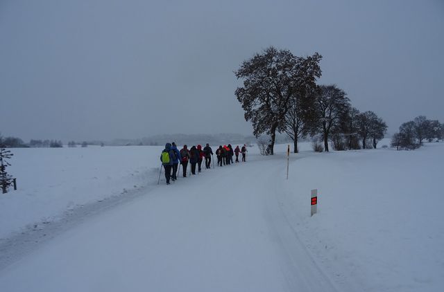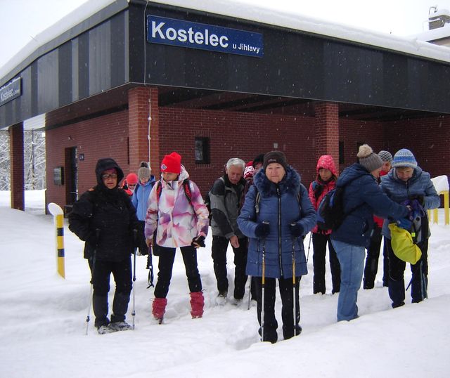 V 8.42 jsme z Jihlavy odjeli vlakem do Kostelce a odtud šli po silnici na Čeřínek – znovu hustě padalo, takže pod sněhem se skrývaly zmrazky a dost to klouzalo. Bylo nás celkem 14 a cestu na Čeřínek (asi 5 km) jsme šli 2 hodiny – silný studený protivítr hnal sníh do očí.