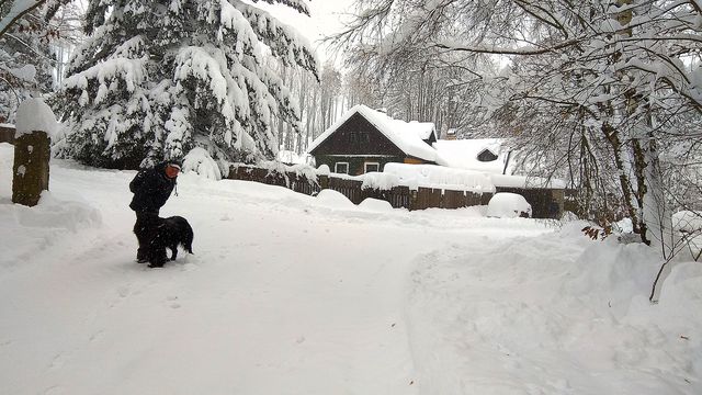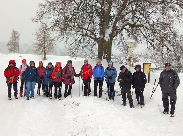 Přišla opravdová zima a sněhu se během 3 dnů navalilo až 60 cm, a stále padal další. Nebylo tedy možné použít k výstupu na Čeřínek trasu, původně navrženou pořadateli vycházky Věrou a Jirkou Veselými. Jediná schůdná cesta vedla po silnici, protažené pluhy. V posledních letech už nebývá tolik sněhu, proto jsme si toho obdarování užívali – Vysočina běloskvoucí, hodná obdivu.