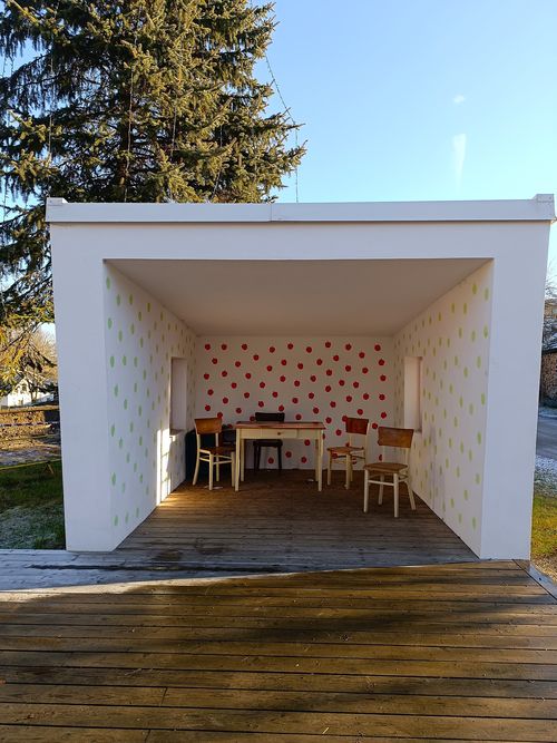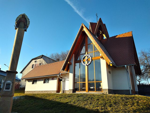 Bylo tam jako v pokojíčku – autobusová čekárna jako ze sna, nová dřevěná kaplička sv. Floriána z roku 2014, která navazuje na objekt hasičské zbrojnice, vedle nádherný novodobý Mariánský sloup…