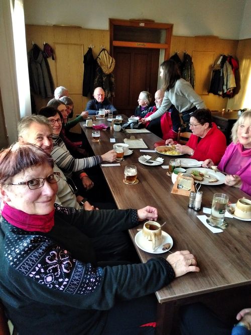 Naše skupina se u odpočívadla na hrázi rybníka Kukle rozdělila ve dví – sedm lidí nepokračovalo až do Přibyslavi, ale okruhem se vrátilo do Polné, zbylých 18 účastníků se pod vedením Ivy vydalo dále.