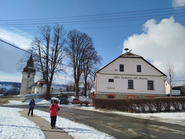 Návrat z Rounku do Rantířova. Foto JDČást turistů, k níž jsem patřila i já, se vydala z Rounku do Vyskytné nad Jihlavou k autobusu. – Tam za kopcem je Vyskytná. Foto JDVyskytná nad Jihlavou s kostelem sv. Vavřince na návrší v centru obce. První zmínka o kostele pochází z roku 1352, dnes žije v obci necelých 1 000 obyvatel.