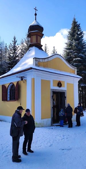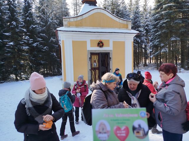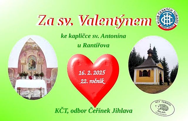 Skupina, která se vydala ke kapličce sv. Antonína pěšky z Jihlavy. Foto Jiří VeselýNa nádraží v Rantířově se sešli turisté pěší a tí, kteří přijeli na start pochodu vlakem. Foto JiříTuristé dorazili ke kapličce sv. Antonína na Rounku u Jihlavy. Foto Jiří Daňhel.V kapličce sv. Antonína jsou vloženy ostatky mučedníků sv. Valentýna a sv. Bonifáce.Účastníci výstupu při příležitosti svátku sv. Valentýna. Foto JDTakové dobroty byly k mání v cíli pochodu. Foto JDPočasí pro putování za sv. Valentýnem se vydařilo.Vpravo Věra Veselá z KČT Čeřínek, pořadatelka akce. Foto JDSladká srdíčka, která se rozplývala na jazyku, jsou dílem Věry Veselé. Foto JVVěra Veselá pořádá tuto akci už dvacet let. Foto JDPochod ke svatému Valentýnu zpopularizoval ve veřejnosti kapličku sv. Antonína na Rounku a blízkou Horu sv. Antonína, z níž je nyní po vyčištění lesů od kůrovce překrásný výhled do okolí. Foto JDNedělní akce se zúčastnila také Lenny ze Zvonějova se svými domácími lidmi. Foto JVKe kapličce na Rounku vystoupilo podle sdělení organizátorky celkem82 turistů.