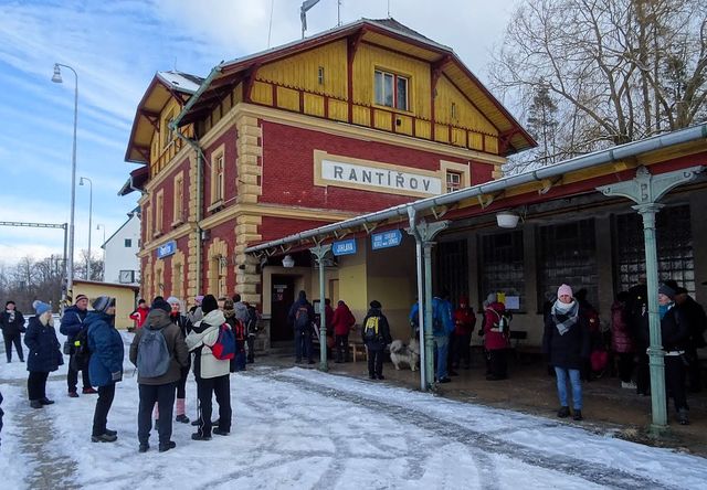 Start byl jako vždycky na nádraží v Rantířově, odkud jdou pochodníci na Rounek ke kapličce. Menší skupina se vydala z Jihlavy pěšky, větší část přijela na nádraží vlakem.