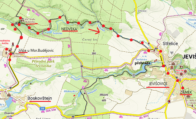 Nedveka je potok (či říčka) na rozhraní krajů Vysočina a Jihomoravského, je dlouhá 18 km, pramení východně od Moravských Budějovic. V místech, kudy jsme s Ivou šly, teče pod zříceninou hradu Bukovina hlubokým lesnatým údolím, pak protéká Střelicemi a na území Jevišovic ústí zleva do Jevišovky.
