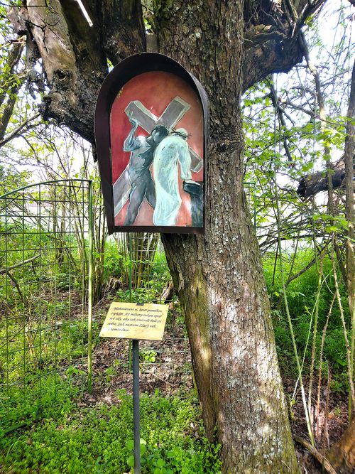 U vchodu do sadu se 14 zastaveními křížové cesty od Bedřišky Znojemské (1928–2021) jsme přečetli: