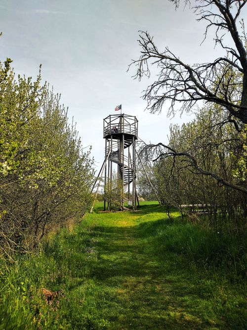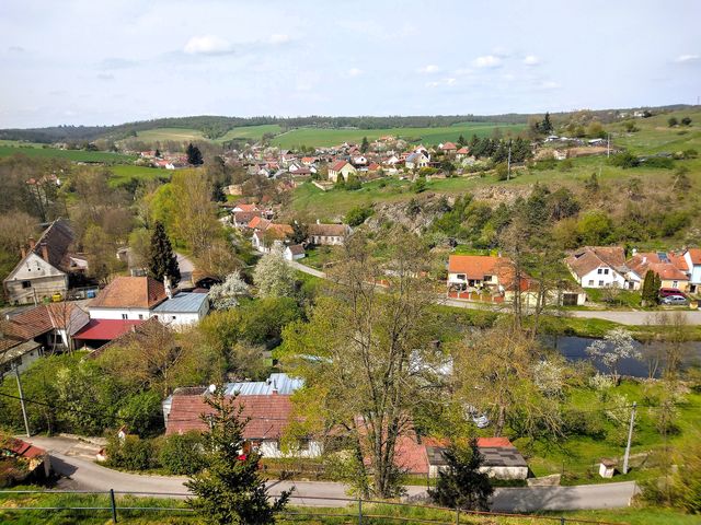 Když jsme vyšly z lesa na stezku po travnaté louce, otevřel se před námi bohulibý výhled na Střelice a Jevišovice ozdobený kvetoucími keři hlohů a větrem poletujícími okvětními plátky divokých třešní – nelze popsat, je třeba vidět…