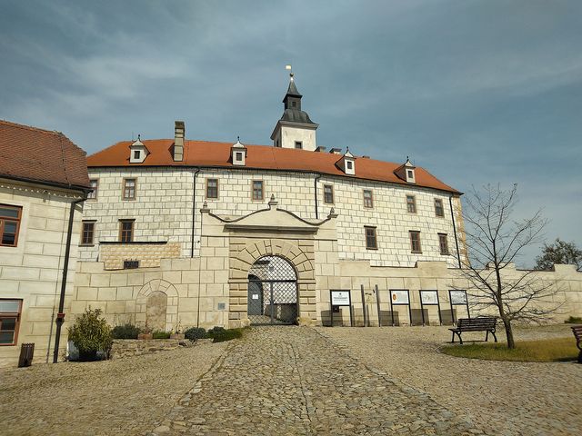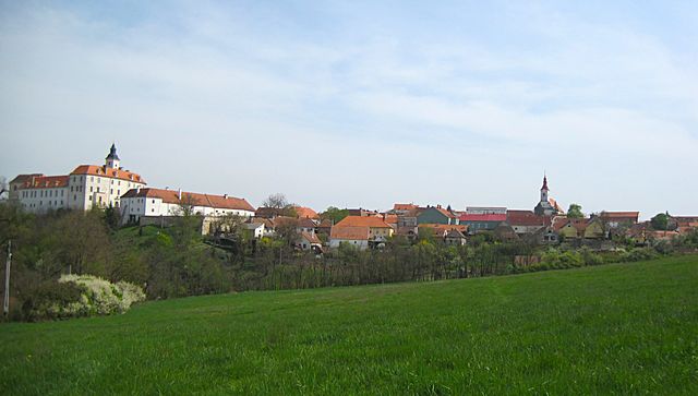 Jen letmý pohled na městečko Jevišovice, kde žije 1 200 obyvatel – naším cílem byl zámek, resp. jeho okolí – věděly jsme, že vstup nyní není možný.
