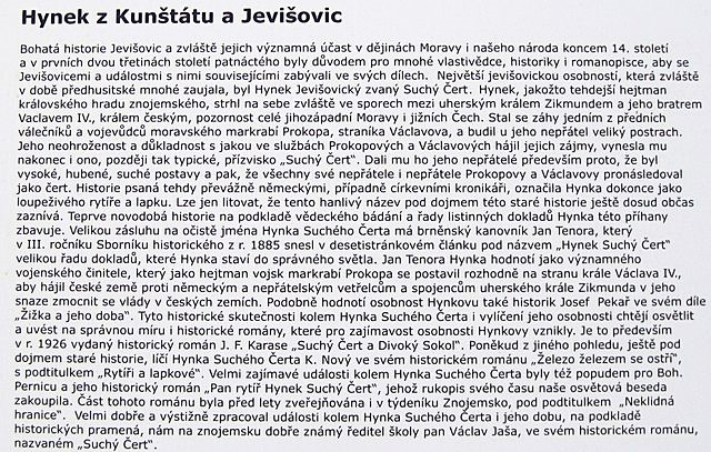 Právě jsme se dočetli, že Hynek Suchý Čert (zemřel asi v roce 1408), byl významnou postavou zdejšího kraje v době předhusitské. Na našich stránkách je i článek o Janu Sokolovi z nedalekého hradu Lamberka, rytíři přezdívaném Divoký Sokol, současníku Hynkovu – oba se zapojovali do válek uvnitř lucemburské dynastie a konfliktů mezi moravskými markrabaty.