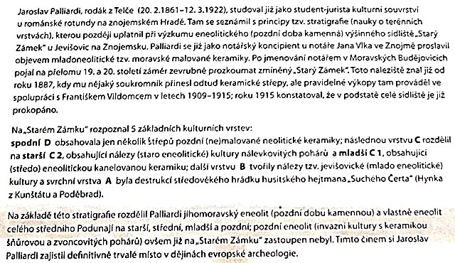 Jaroslav Palliardi se zabýval i průzkumem lokalit na Znojemsku (včetně tamějšího přemyslovského hradu). Jeho sbírka nálezů z jižní Moravy je v archeologickém oddělení Moravského zemského muzea v Brně. Palliardi měl italské předky, jako zajímavost uvádím, že jeho příbuzný, český architekt Ignác Jan Palliardi (1737–1824), vytvořil nejen slavnou knihovnu strahovského kláštera, ale je i autorem několika významných pražských paláců a také domu Josefa Dobrovského (Werichova vila), nemluvě o dalších mimopražských stavbách.