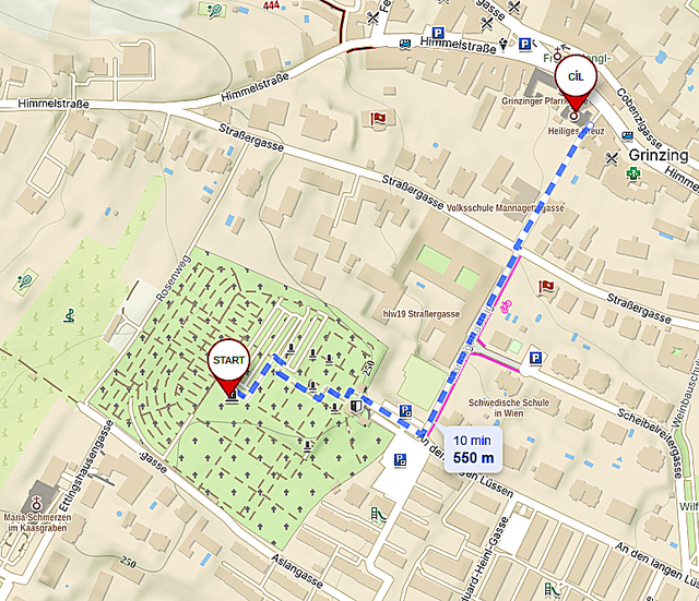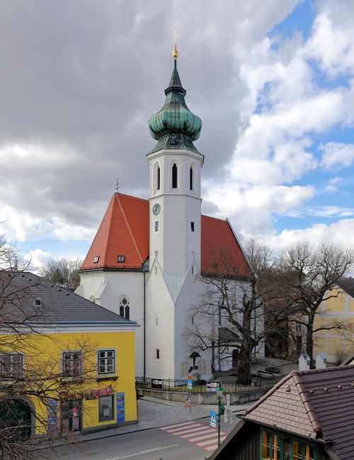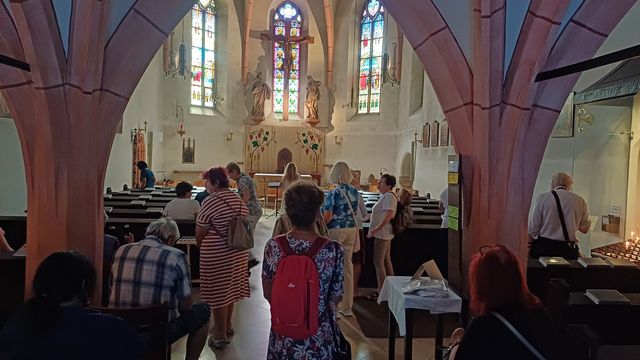 Ze hřbitova jsme šli alejí do místního kostela sv. Kříže, kde 22. května 1911 proběhlo poslední rozloučení s Gustavem Mahlerem a katolické obřady před uložením rakve do hrobu.