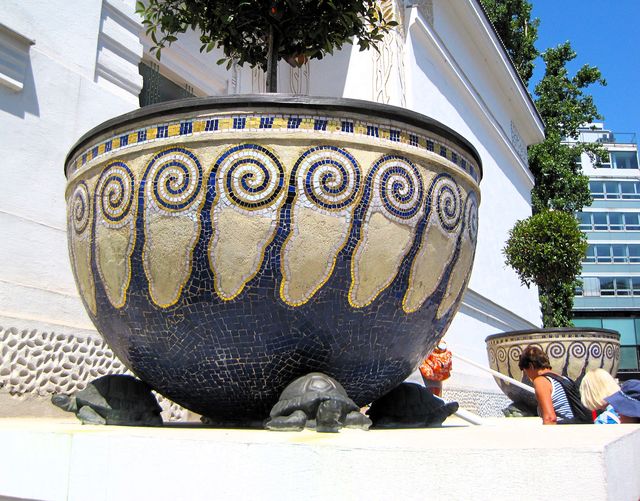 Při otevření výstavního pavilonu pro moderní umění dirigoval Gustav Mahler hudební doprovod ke třicet čtyři metrů dlouhému Beethovenovskému vlysu, zobrazujícímu Klimtovu interpretaci skladatelovy 9. symfonie. Jedna z namalovaných postav na pásu v interiéru má Mahlerovu podobu.