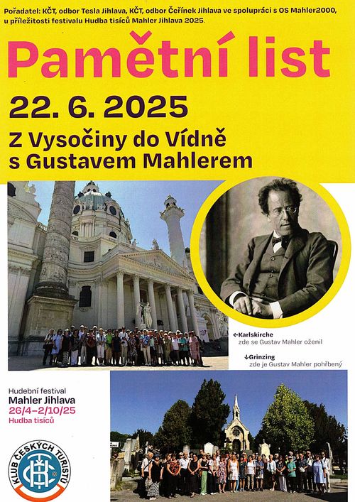 Při příležitosti hudebního festivalu Mahler Jihlava 2025 – Hudba tisíců uspořádal Klub českých turistů, odbor Tesla Jihlava a odbor Čeřínek Jihlava ve spolupráci s OS Mahler 2000 – společnost Gustava Mahlera putování po vídeňských stopách slavného vysočinského rodáka.