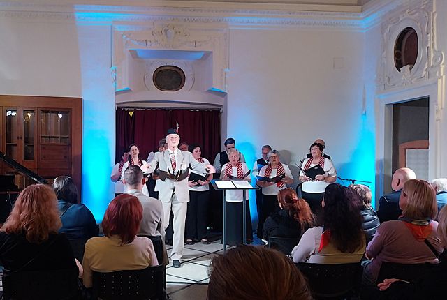Na dnešním slavnostním večeru zazněly nejdříve písně v podání jihlavského sokolského sboru, program pokračoval vystoupením pražského swingového orchestru Modrá Synkopa – prožili jsme nádherné hodiny v historickém místě.
