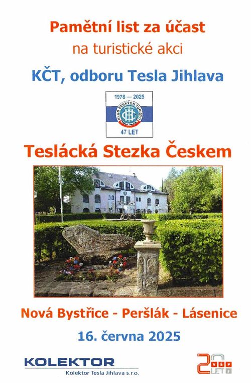 Touto prohlídkou skončil den, který jsme zasvětili vzpomínce na založení Klubu českých turistů (11. 6. 1888). Den strávený na Teslácké Stezce Českem nám bude připomínat pamětní list, který jsme při putování obdrželi.