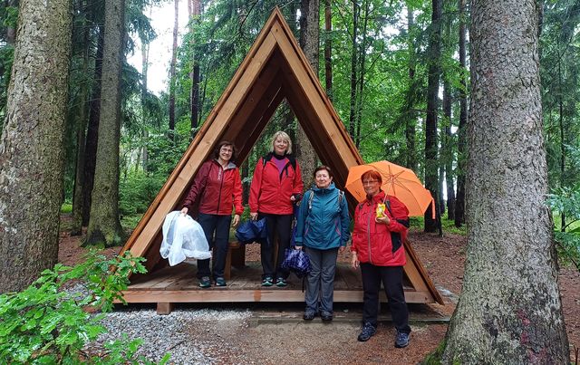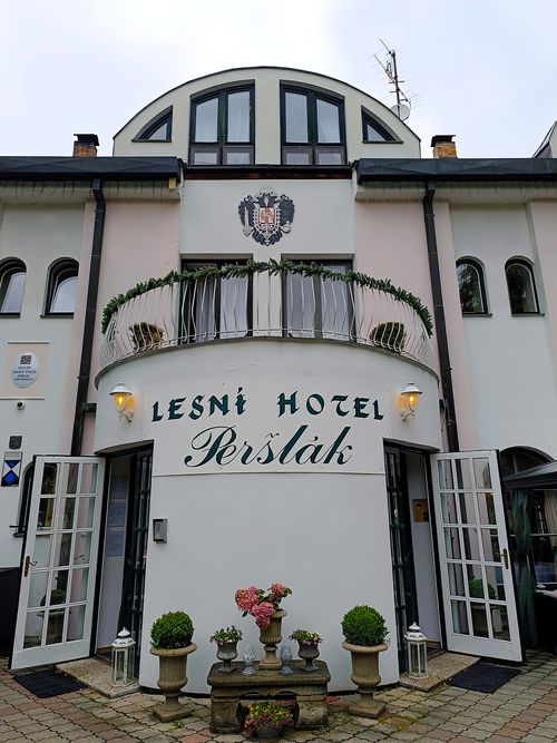 Rozhodli jsme se přečkat nečas v cukrárně na náměstí – a tam byly sladké hody. Nespěchali jsme a sledovali situaci venku. Když se déšť trochu zklidnil, vydali jsme se po zeleně značené cestě na Peršlák. Tři turisté se rozhodli jít vlastní trasou.