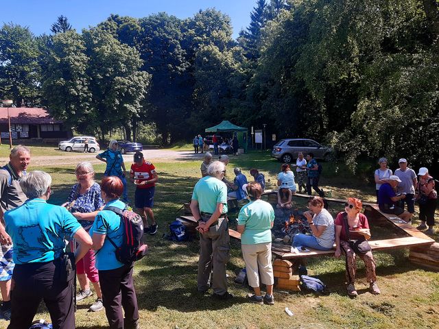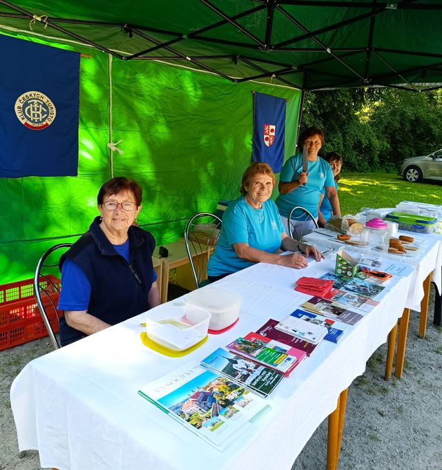 Tak jsme napekly dobroty, přivezli na „špekáčkový“ oheň dřevo, které ještě před lety naštípal Mirek a bylo uschováno v našem dřevníku, postavili stánek na plošině před chatou a čekali na příchozí. Před 10. hodinou přišli první turisté.